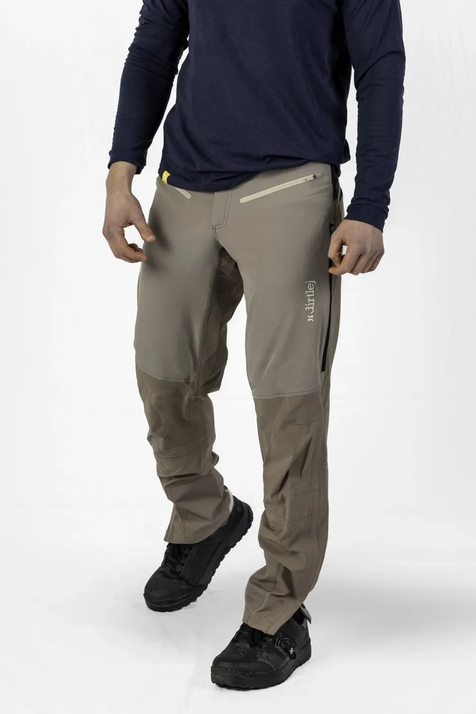 Tylnia część nogawek jest wodoodporna i wiatroodporna, natomiast przednia pozostaje lekka i oddychająca. Dzięki temu spodnie oferują optymalny komfort podczas dłuższych podjazdów i zjazdów w wilgoci lub błocie. Idealne na trail, enduro lub całodniową jazdę all-mountain.